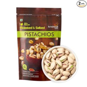 KRISHIVAL NUTS Premium Roasted & Salted Pistachios 200 grams (2 packs of 100 gram each) | Pista Dry Fruit | Tasty & Healthy | High in Protein & Dietary Fiber | Gluten Free & Low Calorie Nuts