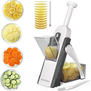 ROMINO Mandoline Slicer Cutter Chopper and Grater for Vegetables, Multifunctional Salad Cutter for Kitchen, Hand Press Push Chopper with 30 Different Cuts, Hand Safe – Stainless Steel Blade (A1)