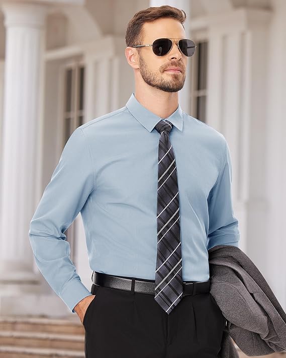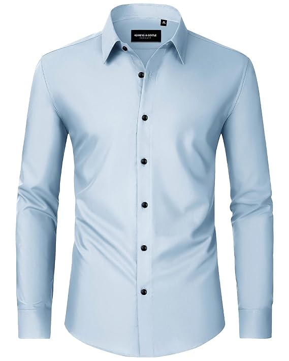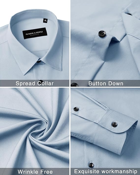 Alimens & Gentle Mens Dress Shirts Long Sleeve Wrinkle-Free Formal Shirts Wedding Dating Business Casual Button Down Shirt, Light Blue, 4X-Large