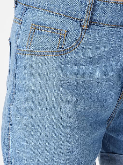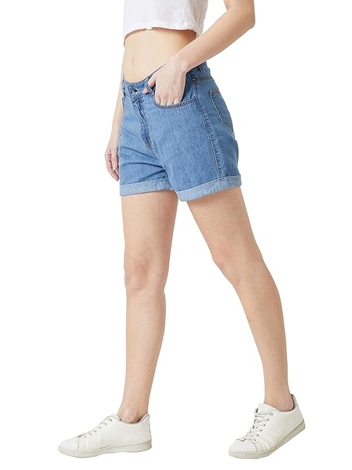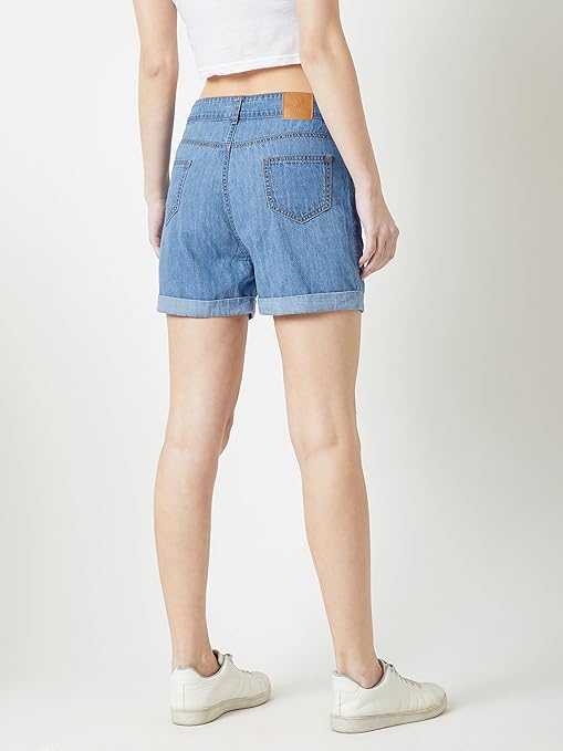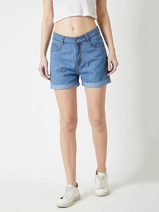 Miss Chase Women’s Blue Relaxed Fit Clean Look Regular Length Mid Rise Denim Shorts