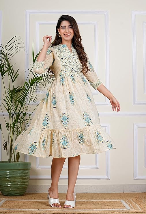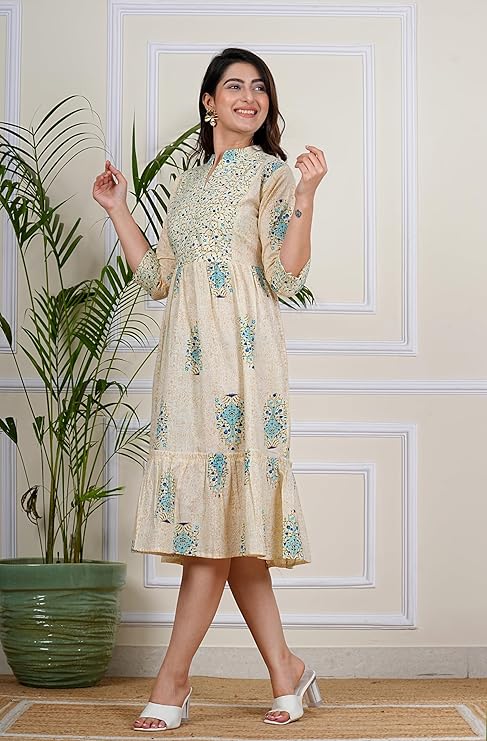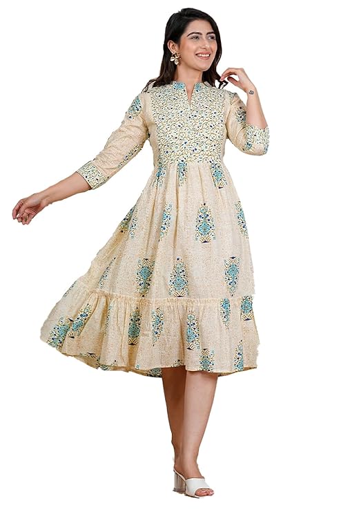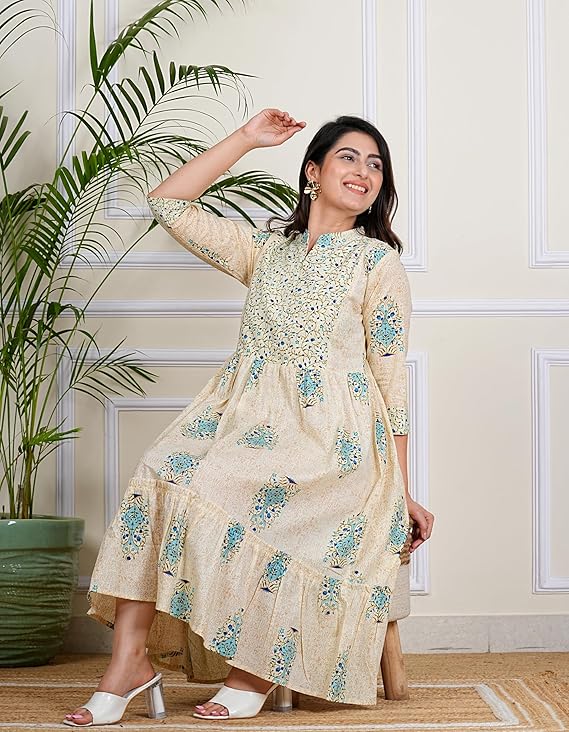 Monique Brand Women’s/Girls Cotton Kurta for Women Floral Printed Anarkali Kurta || Floral Flared Western Dress