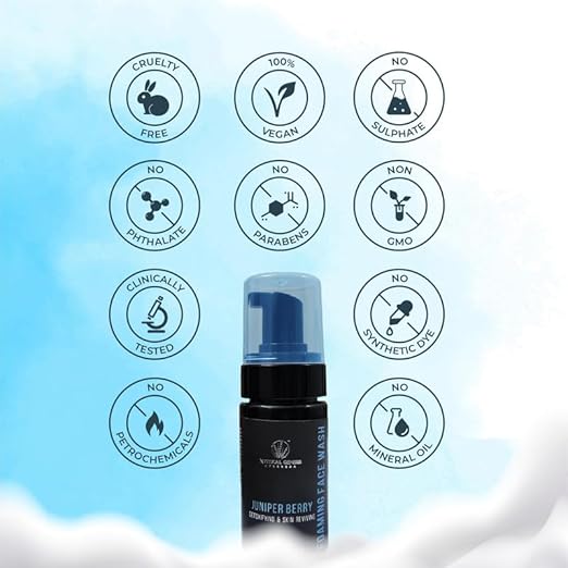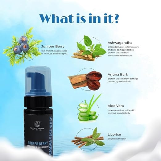 Mystical Genesis Ayurveda Juniper Berry Foaming Face Wash for Deep Cleansing Men & Women, Brightens Skin tone & Reduces Pigmentation, Control Blackheads, Safe on All Skin Type 100 ml