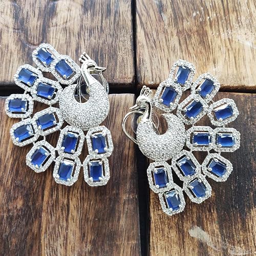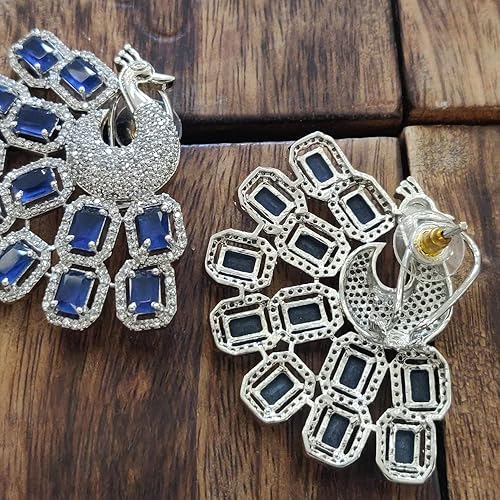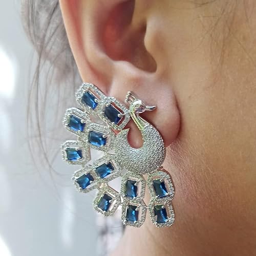 Nsquareshop’s 18K Rhodium Plated CZ American Diamond Embellished Peacock stud Earrings for Women
