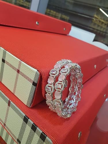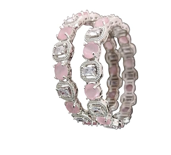 Pakhee Creation American diamond Bangle Set, Pink and Clear Stones, Silver-Plated, 2 Pieces