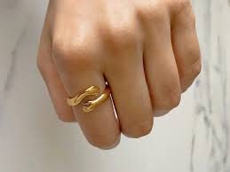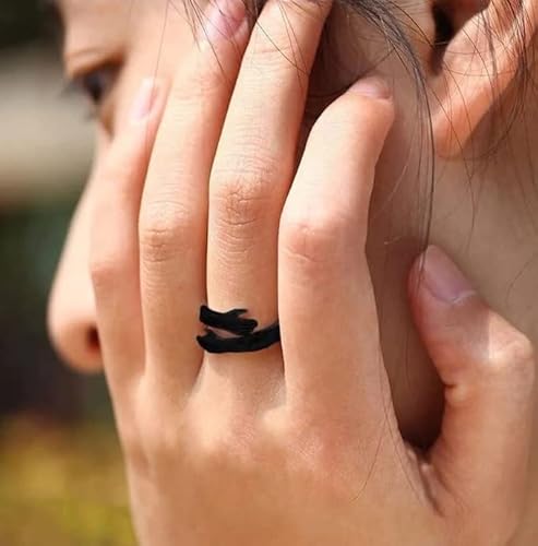 PDY FASHION Pack of 2 Adjustable Stainless Steel Black and golden Color Hug Ring Valentine’s Day/Anniversary Love Couple Embrace Statement Promise Hand Hug Me Thumb Finger