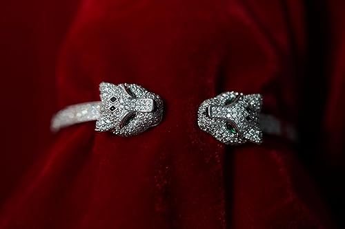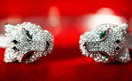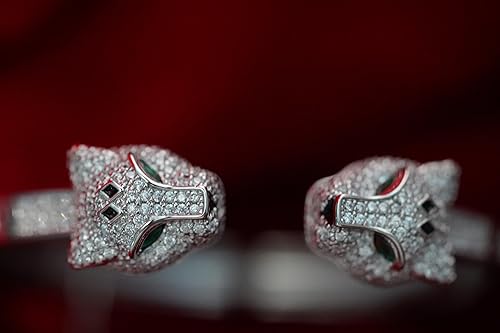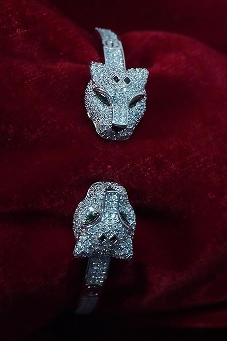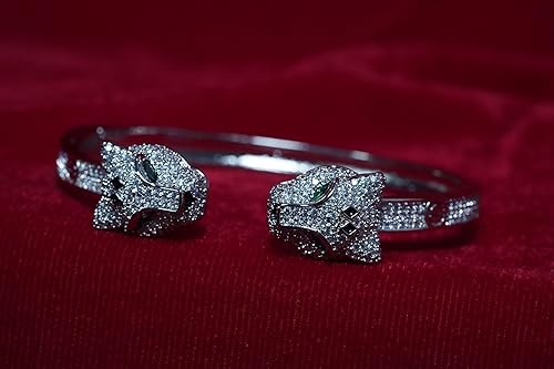 Premium AD Diamond Bracelet -Metal Cheetah Design Stylish Cuff Bangle Stainless Steel Openable Crystal Bracelet