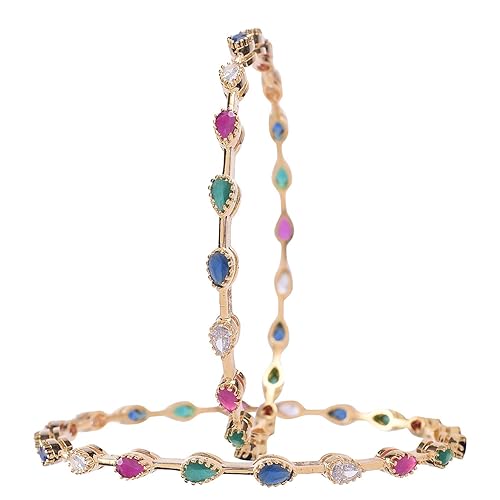 Ratnavali Jewels Gold Plated AD American Diamond Red Green Blue White Sleek Glass Fashion Chudi Bangles Set for Women/Girls