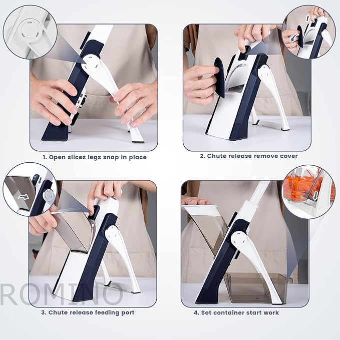 ROMINO Mandoline Slicer Cutter Chopper and Grater for Vegetables, Multifunctional Salad Cutter for Kitchen, Hand Press Push Chopper with 30 Different Cuts, Hand Safe – Stainless Steel Blade (A1)